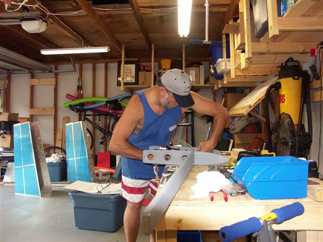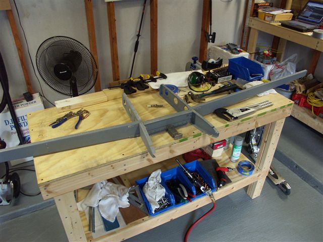 Riveted front spar. Riveted HS-710 and HS-712 angle brackets to front spar. I used the back rivet set to flush rivet the inside 4 rivets.