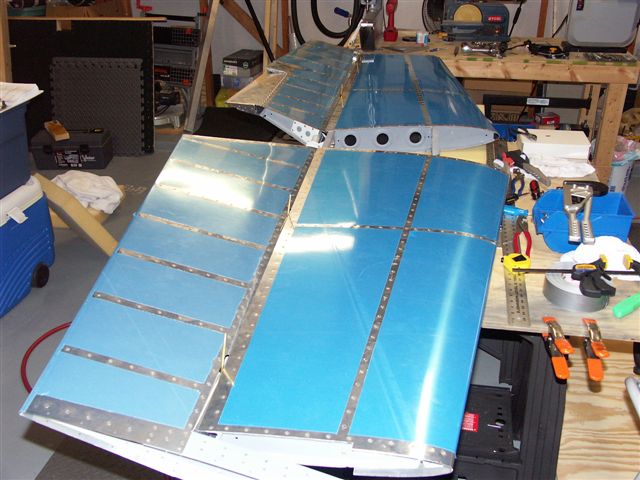 This is the first update since the 3rd but actually there have been lots of little things done. First off I completed the rolled leading edges of both elevators. The roll is so stiff that it looks like I will have to drill extra holes and put in more rivets. In checking other folks sites this appears to be what others have done as well.