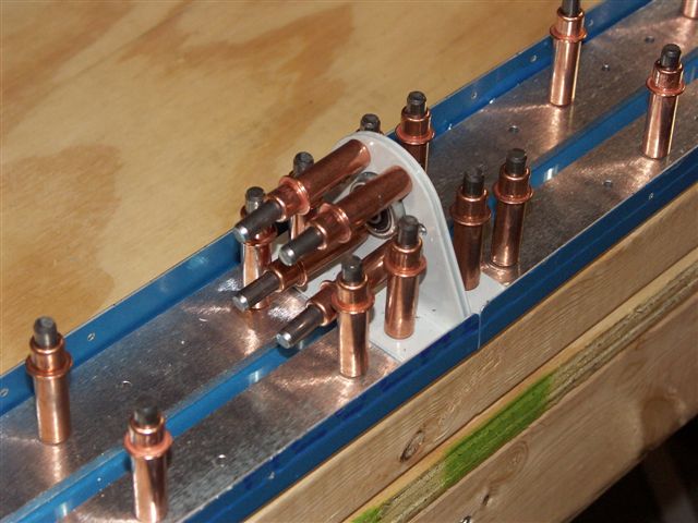 Parint and Rivet of Bearing assembly. Painted the bearing and then riveted into the HS411Bpp brackets. Yippee first rivets on the real plane. Its a small part but COOL!