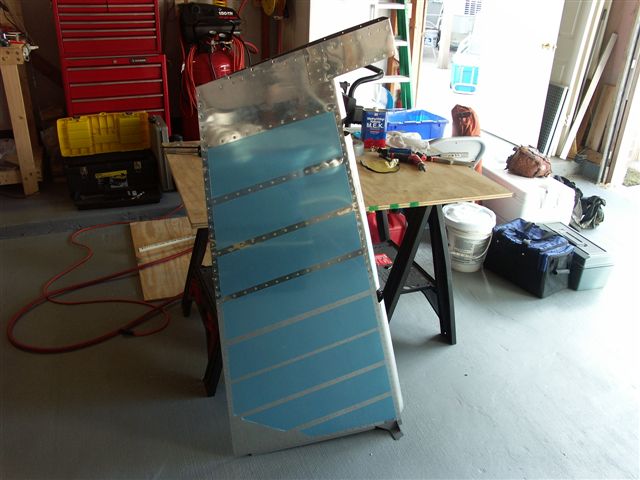 While I was dimpling the right skin I had the rudder frame sitting on the bench behind me. I hear a loud bang..... I look to see what fell on the floor.... O SHI&*. Its the front rudder spar assembly with the lead counter weight and skin attached. &%$^#$$*! Already a ding and way away from flying!
