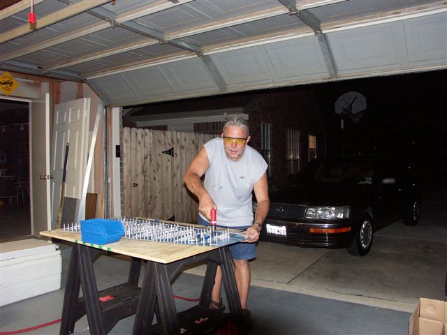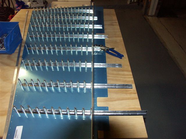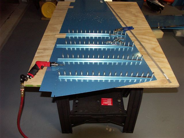 Match drilled stiffeners into work board and clecoed down stiffeners and skin down to the work board.