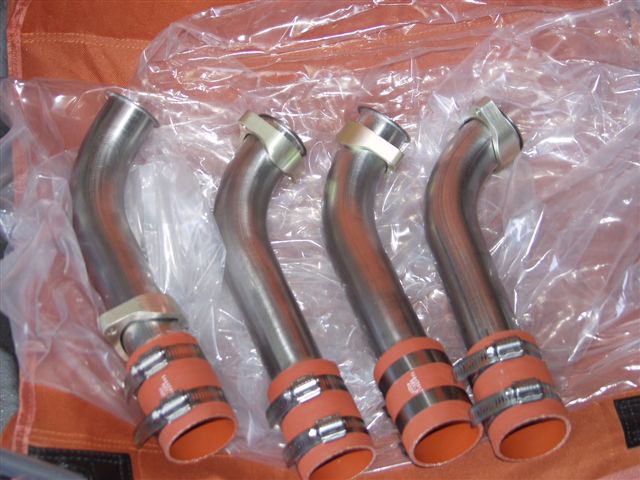 Next I reinstalled the hose clamps on the new intake pipes with the new rubber hoses.