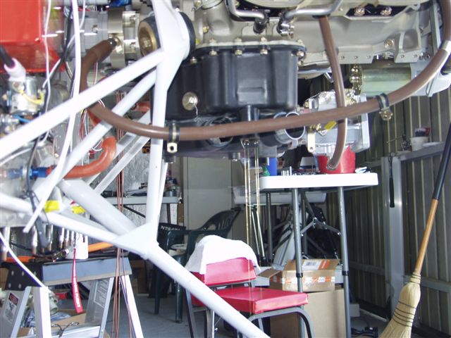 Last I drained out the storage oil. There was not that much in there to drain. This stuff is a really sticky type of oil more like an STP. Very think and sticky. I used tiewraps on the FI to keep the spacer adapter in place. Tomorrow after work I will drop the sump and install the new one.