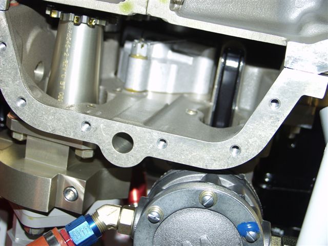 Mike was already there to meet me. He was just stopping by but ended up staying and helping me drop the old sump and replacing it with the new one. Once I had the Ryton off I cleaned up the gasket edge on the bottom of the engine. Removed the finger screen from the old sump and replaced the copper crush gasket.