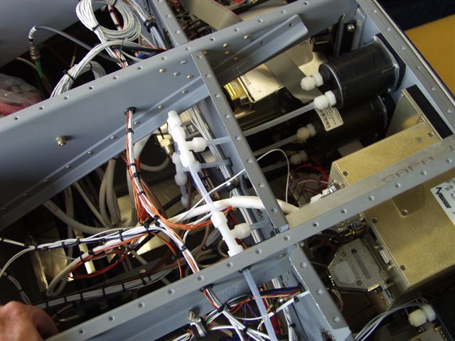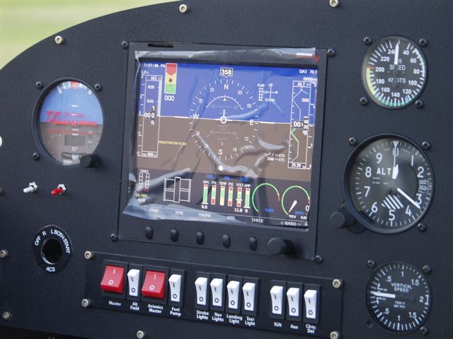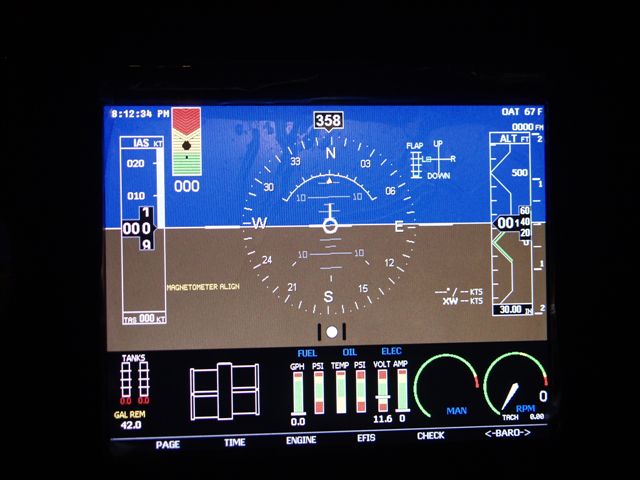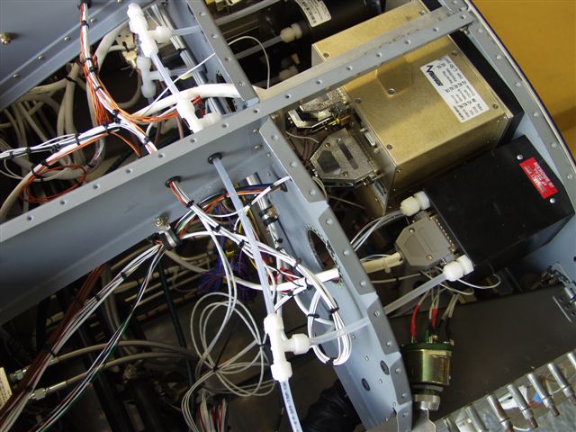 Anyway first I starting plumbing up the static ports on the instruments. Got that done and pulled the bird out in front of the hangar. Did a quick cleanup with the vacuum. Powered up the panel and took a few pics to show how well it shows up in the sunlight. Then I as the sun went down to see how things adjust for night vision. A 172 landed and I made a radio call to check the SL-30 Comm since I had not checked it since the final install. The guys said it sounded GREAT!