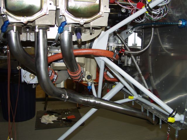 Next I started fitting up the exhaust on the #2 and #4 cylinders per Larry's instructions. He made a not that says the quick drain oil fitting will be in the way of #4 pipe. You can see from the pic it will hit so I will remove that plug in the side and install it there.