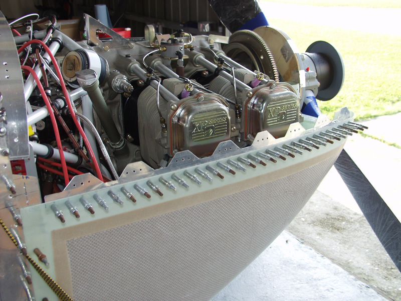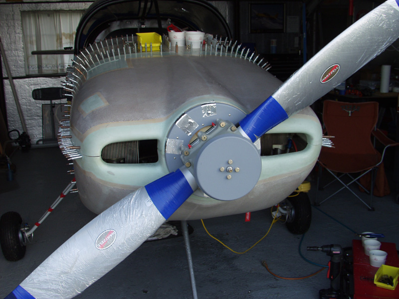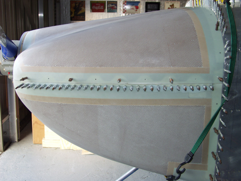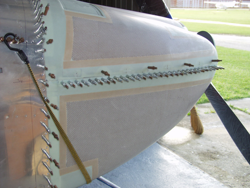 Drilled the center holes thru the fiberglass in the cowl. Later these will be enlarged to 15/32's for the grommets which hold the phillips head fasteners. Then I reinstalled both cowl pieces and photoed the fit.