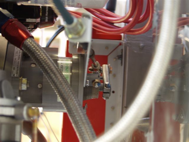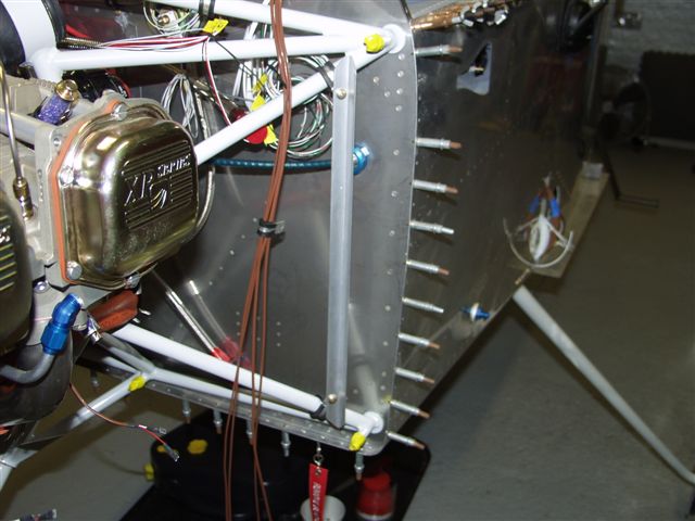 Now I got to looking at how I was going to route some of the engine wires and decided to fab up 2 side brackets out of aluminum angle. I mounted these on each side of the engine mount with adel clamps.