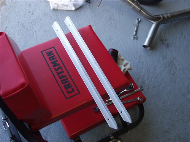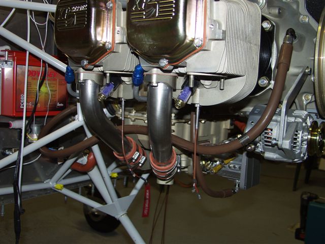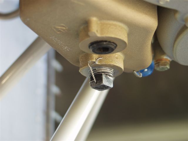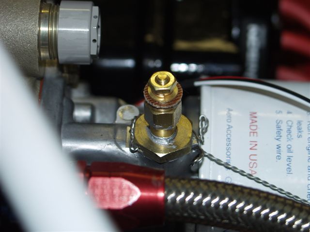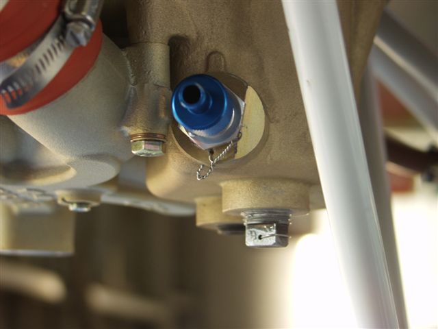 When I got home from work I had a package from Vetterman. The hanger kit had arrived. So off to the hangar I go. Once I get there and get ready to start hanging the exhaust I notice there are some things that need to be done first. Like move the quick drain to the hole on the side to make clearence room for the exhaust and replace the old square plug.