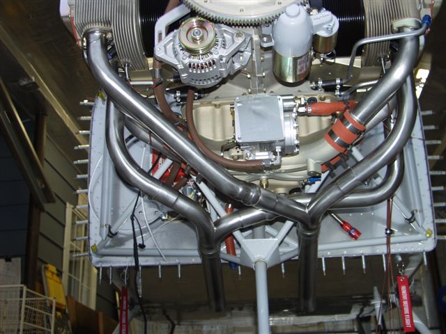 Mounted the sniffle valve in the bottom of the sump. Started to hang the exhaust and found it hits the exhaust. Had to move it to the back hole like you would for a tail dragger.