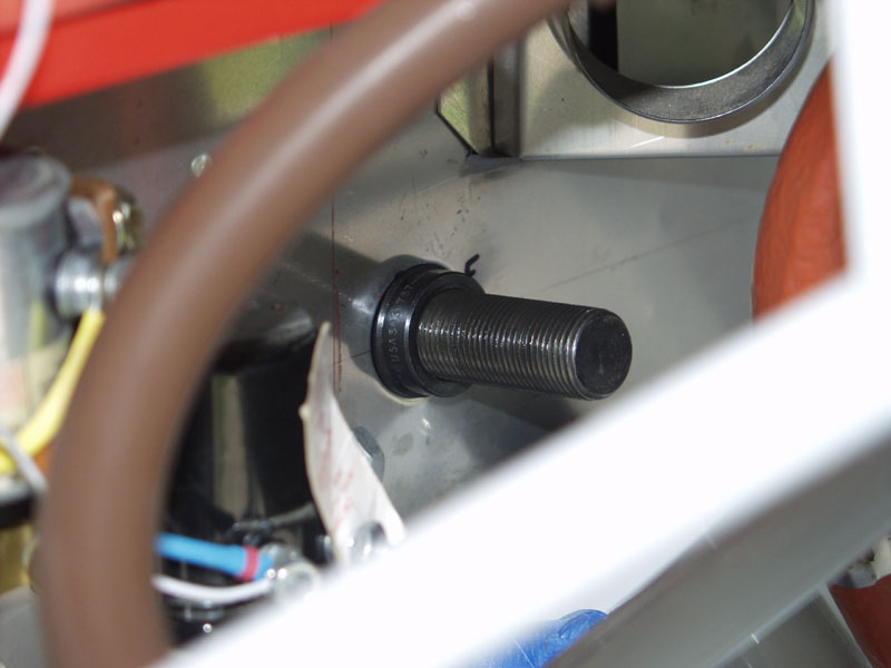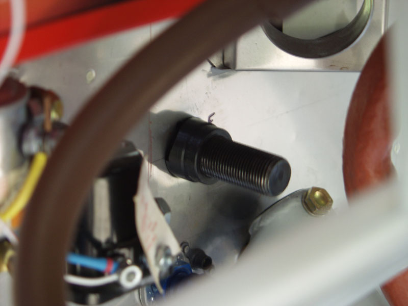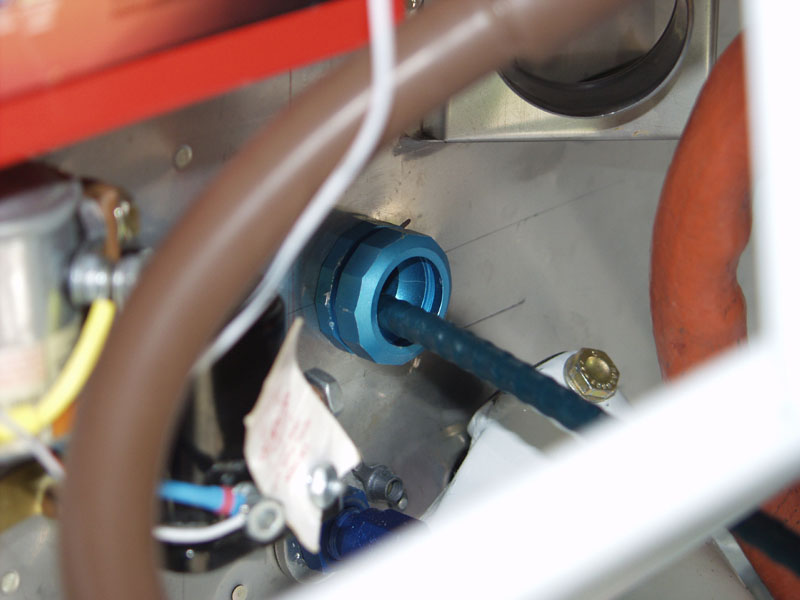 So I decided to continue on the other engine stuff. We cut the hole in the firewall for the throttle cable eyeball. This is one of those things that would be easier with the engine not in the wasy but you can't just follow the plans with a non standard engine. We drilled a hole with a unibit for the knockout punch. Once the hole was cut we installed the eyeball and passed the cable thru. Turns out the cable is 12 inches too long.
