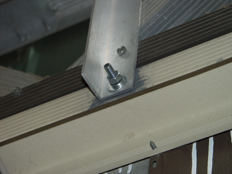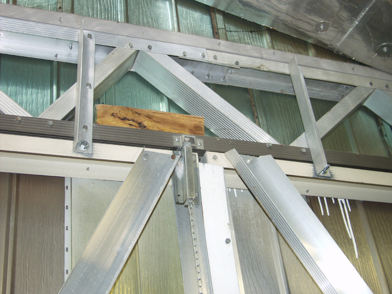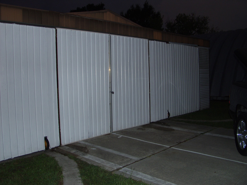 While I was getting ready to start bolting things up Jim stopped by and gave me some pointers on the canopy. After bolting things up Gary my hangar neighbor came by. 3 of the front panels on the right door have always had a slight gap in them. If we ever have a bad storm and the wind was able to come in from the north east it could get under these panels and if then ever came off things could get really bad if the wind got inside the hangar. Gary helped me remove these panels and reinstall them locking them in place as we reinstalled. We had to remove a total of 4 panels and reinstall. All of this with the threat of a rain storm with lighting. Turned out to be a 3 beer job!