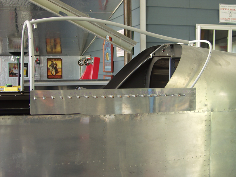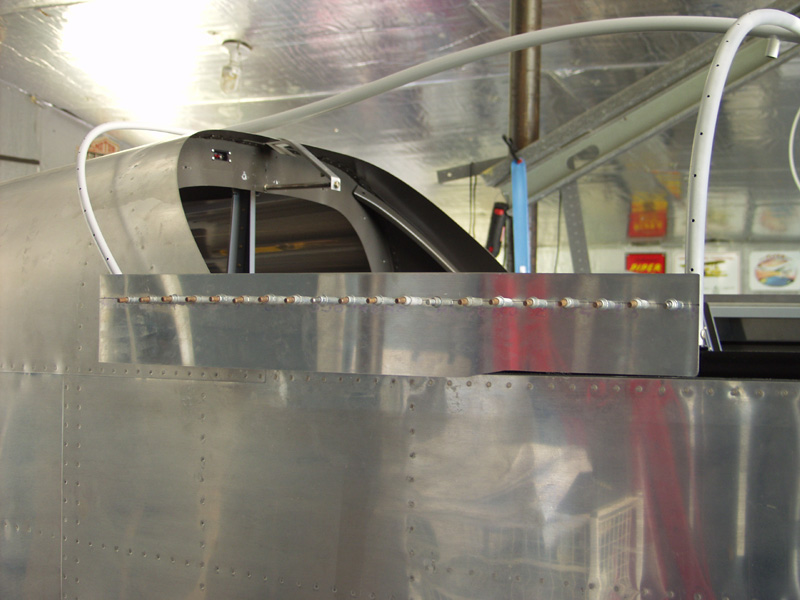 On the pilot side I decided to try something different. Due to the bow in the frame the inside piece since it has a bend moves around as you drill it. This time with it clamped in place I drilled the first hole and then the last hole at the rear. Making sure it was clamped in place the inside piece again had worked itself higher in the middle of the bow. I pushed this down and then drilled a hole in the middle.