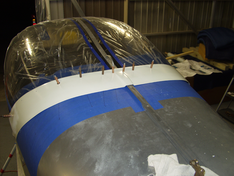 I removed the rear clecos and used the marks I made on the masking tape for indexs to the holes in the canopy and frame. After installing a few clecos starting at the top and working down the fit looks nice and tight.