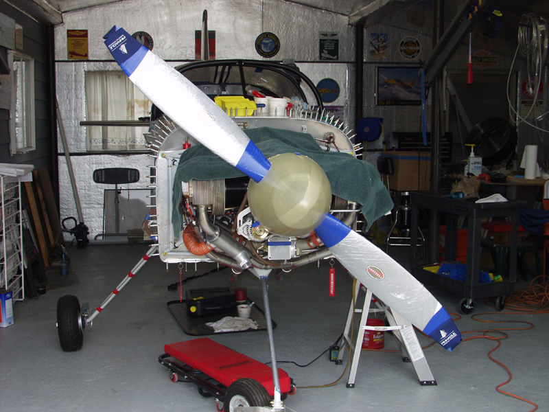No pics of this process as it is messy and didnt want to infect my camera with epoxy flox. Next while that was setting up I tore the plastic off the propellor and reinstalled new shrink wrap to clean up the prop area from the baggy plastic. I tapped the ends and around the prop spinner area to minimze scratches around the hub. Once I get the canopy fit right I will remove the plywood spacer and finish drilling the screws around the hub and complete the spinner installation.