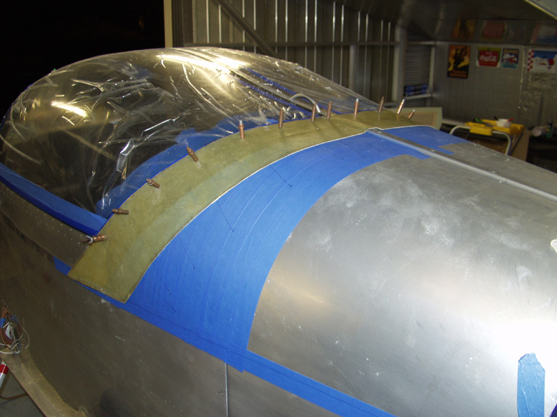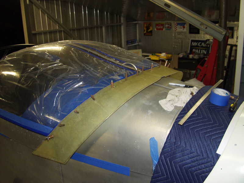 Last I fit and drilled the other fiberglass rear canopy fairing. This fits smoother and may work better. I am going to get Jim K's opinion before I go further.
