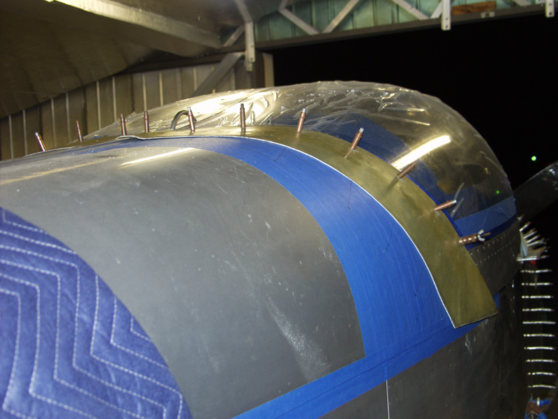 On the top cowl I used plastic held in place with masking tape on the finish side of the cowl. When I removed it there are still raised areas where the epoxy flox mixture pushed thru but it sanded off pretty smoothly. I think I will still do some more finisih sanding and then mix up some micro balloons to skim it as this should feather out better.