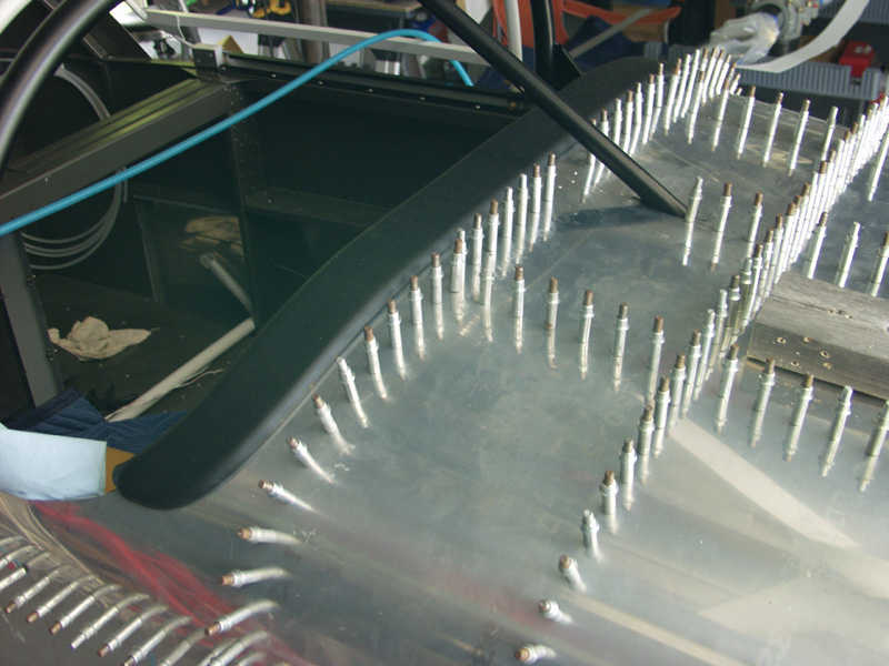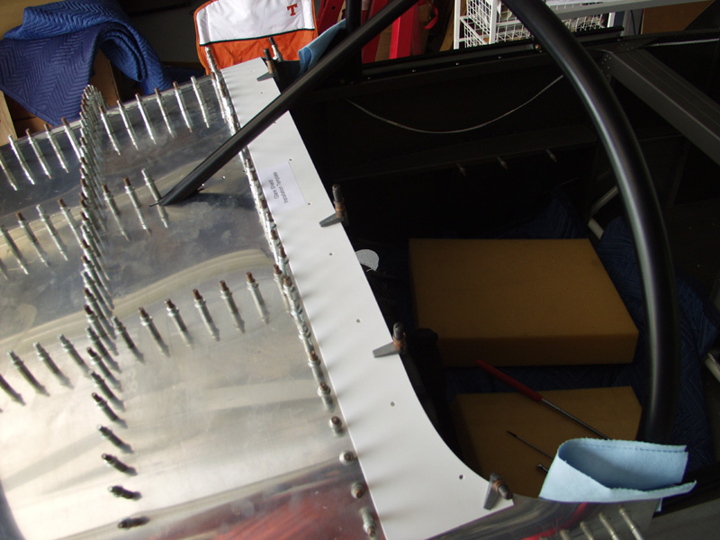 Today was a great building day. I started with clecoing the top forward skin in place to get the canopy frame finished and ready for glass cutting. Once I got that done Jon showed up and started helping me. He finished up safeting the alternator bracket.