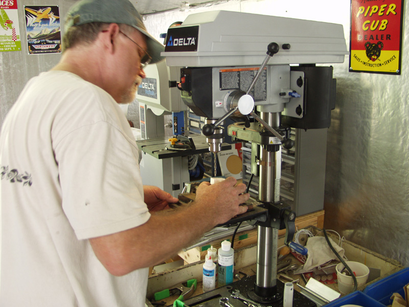 I started working on the glareshield trim I picked up from Classic Aero Designs. This really looks first class and I highly recommend it. Once that was complete it was on to the canopy frame blocks that sit at the rear of the side tracks. These give the rear frame a place to lock into and hole the canopy tight against the sides. These require and hole to be drilled from the rear in a angle down and in geometry. Jon marked up the first block and setup the drill press and nailed it the first time. I drilled the side holes per the plans and then we started on the other side. Same thing again. They may need a little adjusting but you can pull the frame down tight which means they are really dang close.