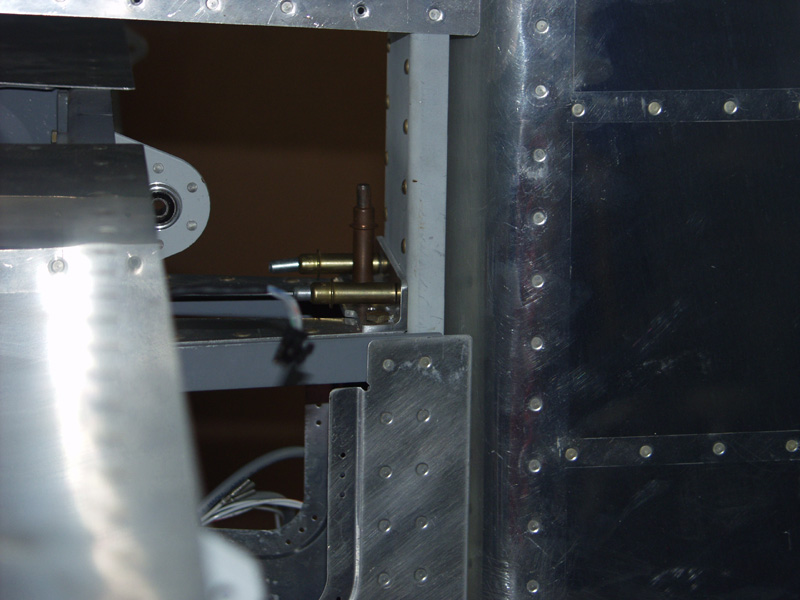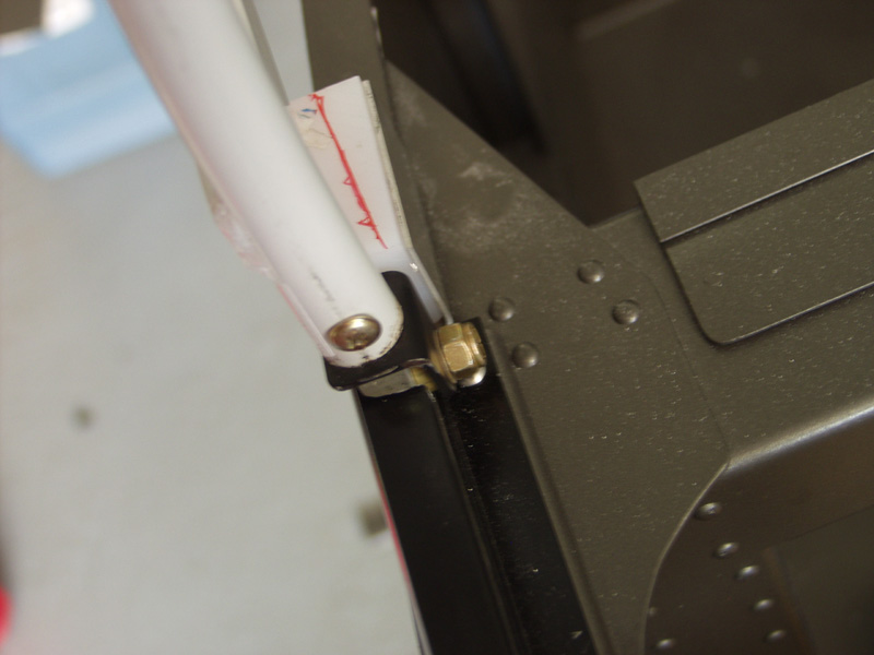 Next we decided to hang the rudder to make sure the vertical stabilizer is straight. First I rechecked my measurements by measuring from the tip of the VS to the edge of the HS. 62 and 1/4 inch on the nose. Then checked the measurement from the longeron to the top of the bottom hinge bracket. Dead on. Next we drilled the 4 rear bolt holes from the inside of the tail hook bracket out thru the rear. Once that was complete we screwed in the 3 bearings into the rudder. This took quite some time as its alot of trail and error getting the rudder to align up with the brackets on the rear of the VS. Once the rudder is in place and swinging in both directions freely you know its truly vertical forward to back wise. Then it was time to drill the 11 or so holes which get riveted to the front of the VS.
