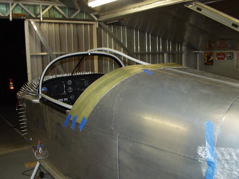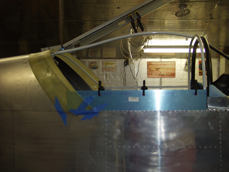 Last I clamped the canopy trim to one side and fit a fiberglass piece I picked up for the back. Fits pretty good. Not sure if it will work once the glass goes on but it might. Just have to see if it will save some time. Sure would beat trying to fit aluminum on a compound curve.
