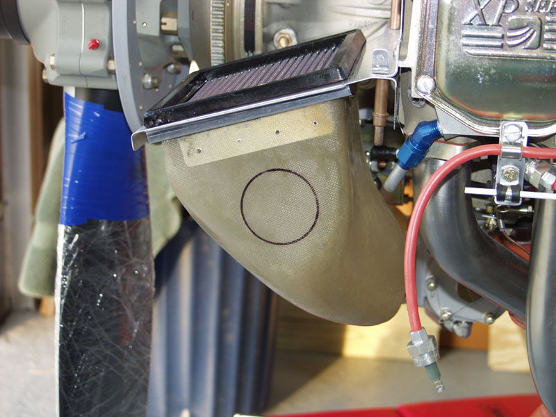 Today is FAB Alternate air work. First I used the intlet plate to mark the position of the hole per the plans. Next I borrowed Garys big ass drill since my 3/8 drive was too small. Drilled the hole with a hole saw and smoothed out the edges.