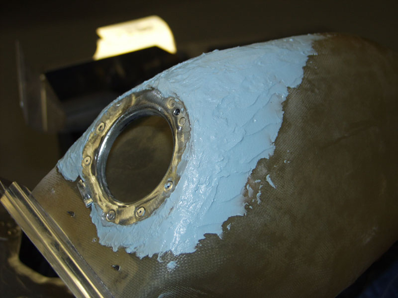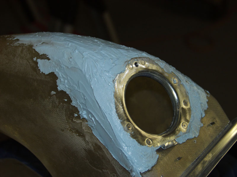 Now this all gets hidden under the cowl so I could leave it like this and no biggy right. Well I figure its a good place o get some practice on some other fill methods. So I mixed up a batch of Smoothfil. Looks like cake batter huh. I almost wanted to eat some.
