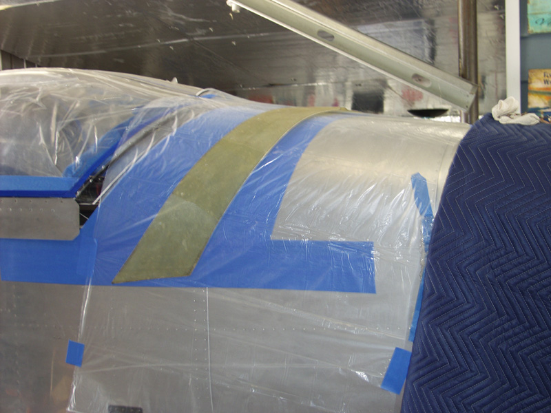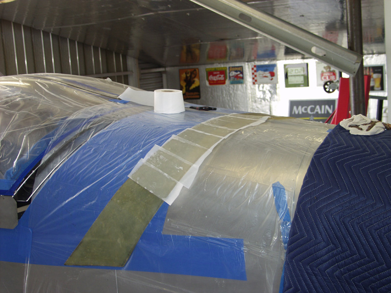 Took a break from the cowl and laid some plastic over the fuse to keep from getting any epoxy on the aluminum. I laid up some epoxy over the canopy fairing and used peel ply to get a smoother finish. While that setup I moved back to the cowl and FAB.