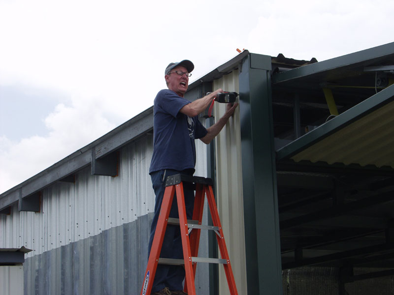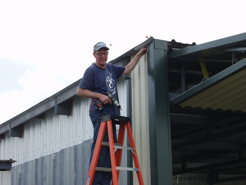 My neighbor Gary was working his tail off fixing the corners of his hangar. While I was out taking pics I snapped a few of him up on the ladder. Have to give him some props. He is the hardest working guy I know and has a sweet hangar and nice Bonanza. I hope it gets it back home this week!