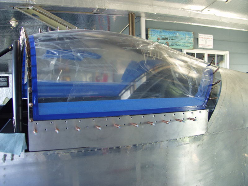 I reclecoed the glass back in place and put rubbing tubing in each hole down the center and along the front bow area in each rivet hole. Next I installed the painted side pieces.