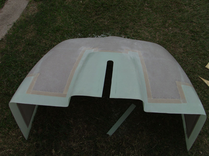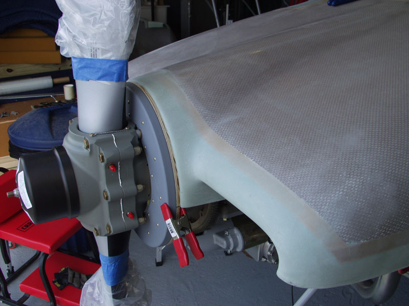 Next I clamped the front of the cowl in place for the final line up and fit on the front. Then I measured and marked and marked a line 2 inches back from the firewall front edge. Then I measured amd marked a line 2 inches forward of that line. This should make a cut line that should match the cowl to the front of the firewall.