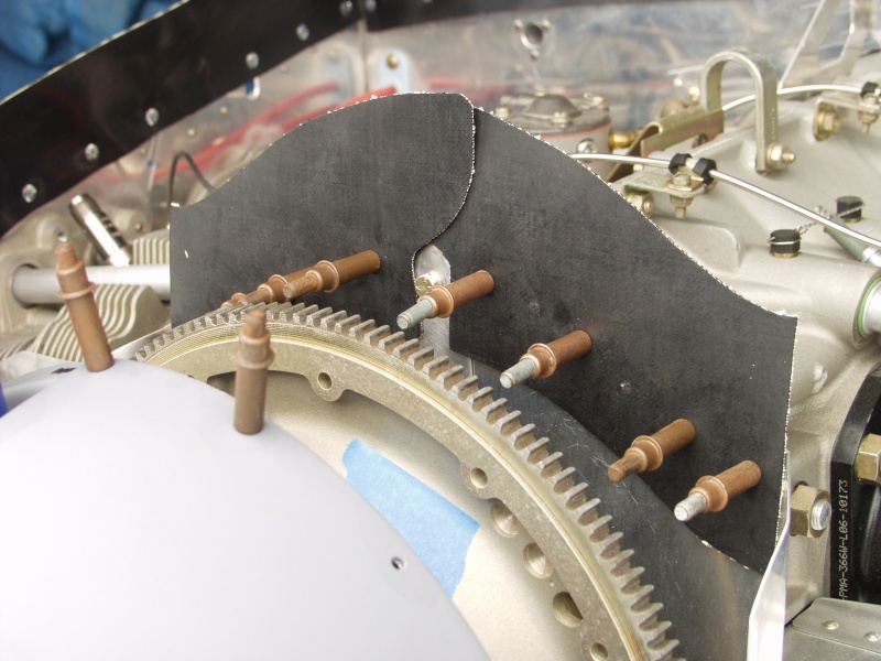 Today I finished the baffle material on the front baffle structure in preparation of first engine start. I made a paper template to mark on the rubber material. I needed to make it in 2 pieces to allow the baffle to be removed.