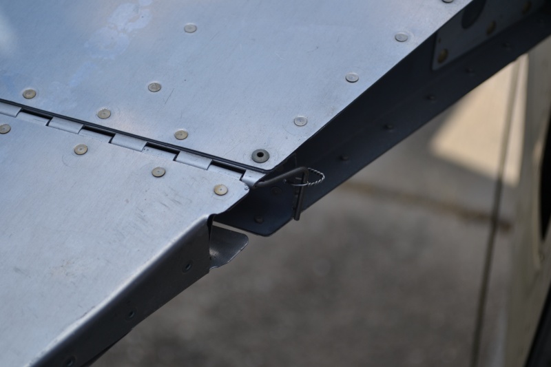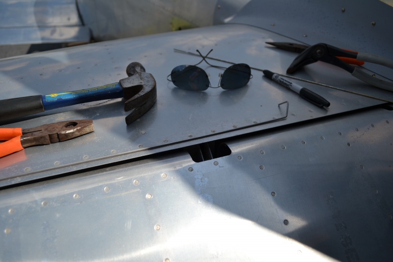 I was looking over things awhile back and noticed that the hinge pin on the trim tab was just a straight pin. It needs to have a bend so it can be wire tied in place. I marked a new piece of pin and bent it into the correct shape. Next I marked it to cut to length. Next I removed the old pin. Was not sure it would fit with the rudder already installed but they are pretty flexible.