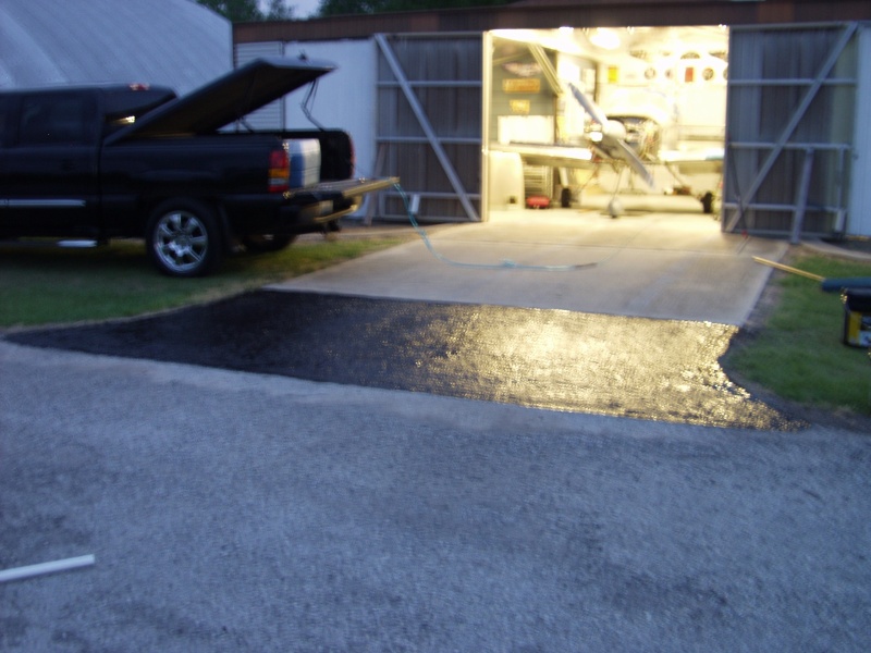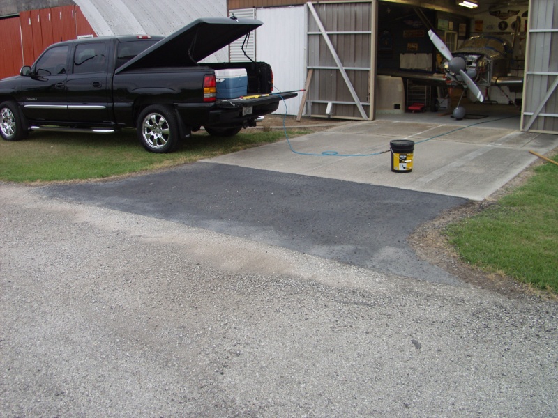 Its been a year since I put down the asphalt sealer in front of the hangar. Since I am starting the engine next weekend and will be moving the plane in and out I want to get this done to keep some of the rocks from flying around.
