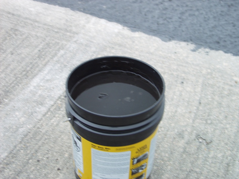 I picked up a new bucket of sealer at lunch today from Lowes. My hangar neighbor Mike turned me on to this stuff. I wish I would of done it sooner to save some of the surface that used to be there. We have been really dry the last 6 months and are in a drought to the burn ban level around all of TEXAS. When the rains finally do start coming it really losens up the black top surfaces.