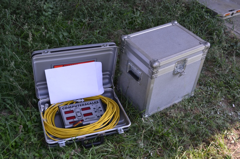 About the time I get everything opened up and ready up drives John and dumps out 2 cases. One is a case with 4 scales and the other is the brain box that gives the the individual scales weight and the total.