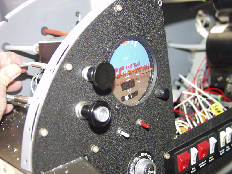 More loose ends complete. Worked on the alternate air cable today. It was tough trying to find a good place for this. Tried to locate it down low to keep it out of the way. Tried to mount it in a forward fuselage stiffener next to my left knee. Just not enough room there. Next was next to the throttle quadrant to the right of the flap switch. The problem here was routing the cable under the panel across all the wire harnesses and rudder pedals. No joy.