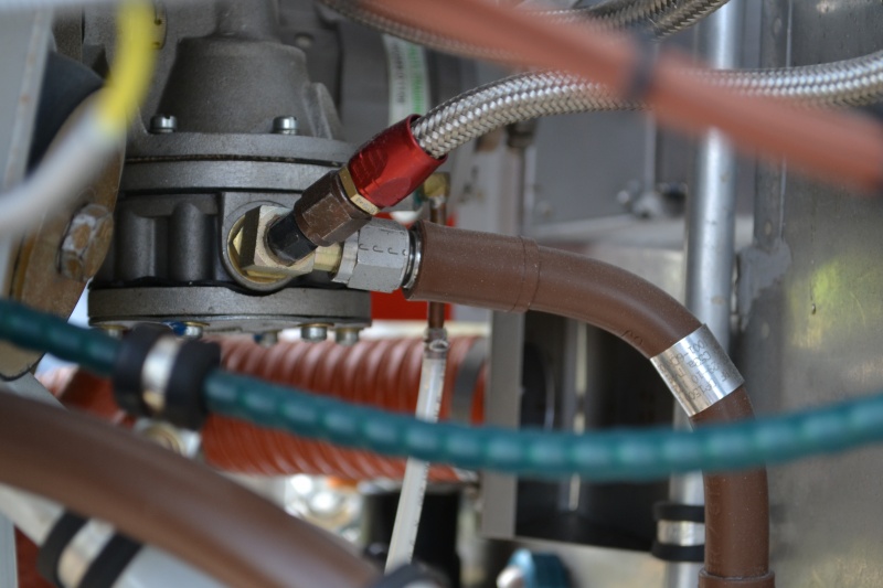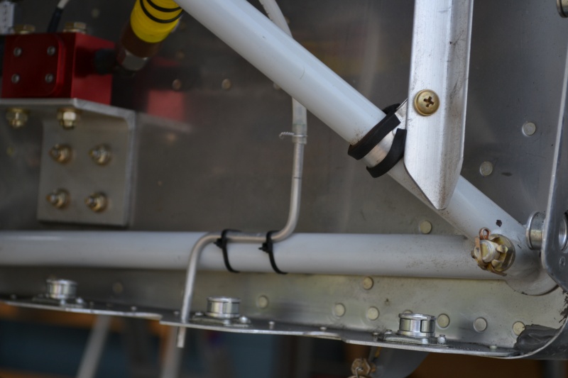 Later in the day Mr. Test Pilot came over to help as well. He started removing the wing fairings as I installed the tubing from the fuel pump to direct overflow away from the exhaust pipes. I have never seen anything drip from this port but the plans say to do it and fuel on HOT exhaust cannot be good so its done now.