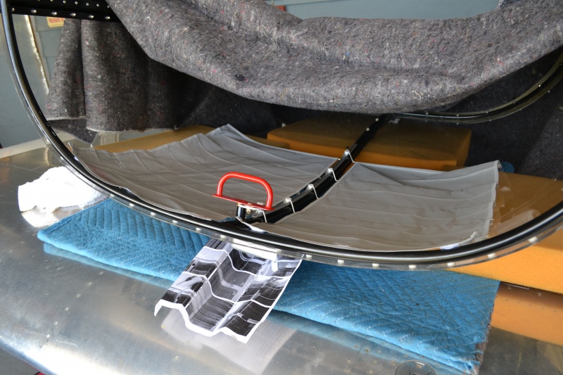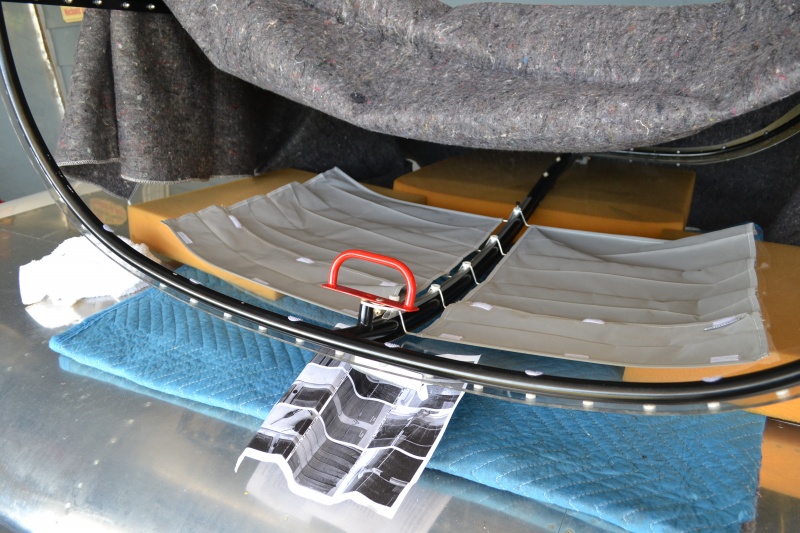 Installed the Kogar sunscreen and tapped the holes for the velcro pieces that holds the shade in the forward position. Almost got the seat pans completed but rain out of gas. ITs just too freakin HOT!