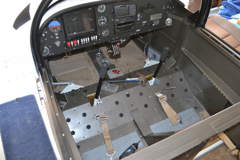 Moved on to the baggage area and installed the flap rod covers. Then the carpet. Moving to the seat pan area. Lots of buildup in this area. Started installing the screws. Had to take lots of breaks for water.