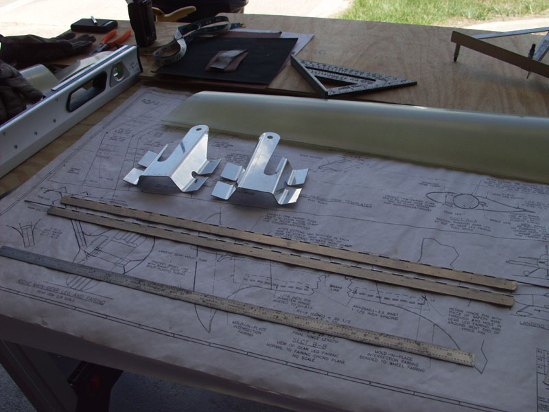 Ok enough fun for yesterday now back to work. Started out today on the gear fairings. Last check for fit and final triming. I cut the hinges to fit at 25 inches and marked the rivet holes at 1.5 inches. Drilled the on the press and deburred.