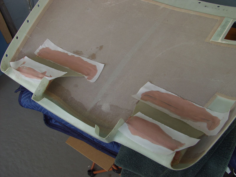 Man it was hot today. 99.... Last I mixed up some flox beads and epoxy to fill in and smooth out the inlet dams. I put some peel ply down to smooth stuff out and minimize additional sanding. We will see how that works out.