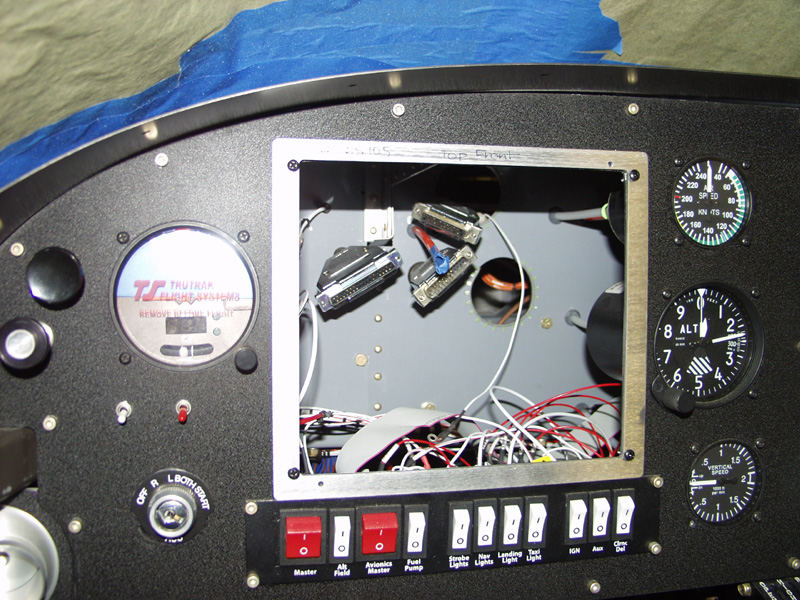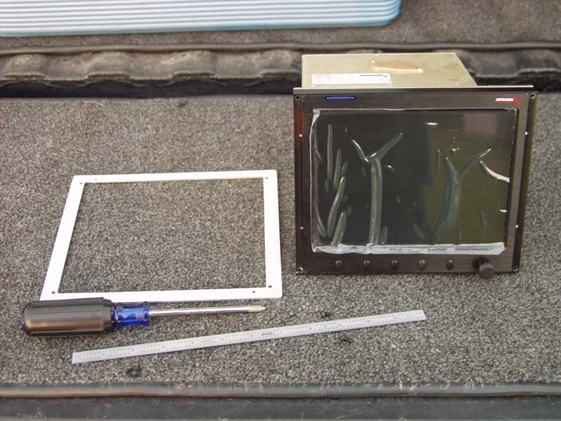 As for left and right width I will just use the existing screw holes and enlage them and then draw a verticle line between them. Then I will dremel vertically and clean it up with a file for fit. The AFS should then slide in from the front. The trim ring gets screwed to the EFIS with the existing holes. Then there are 2 holes. One in the upper right and one in the lower left that get match drilled to the panel. This holds the EFIS in place allowed it to be removed from the front.