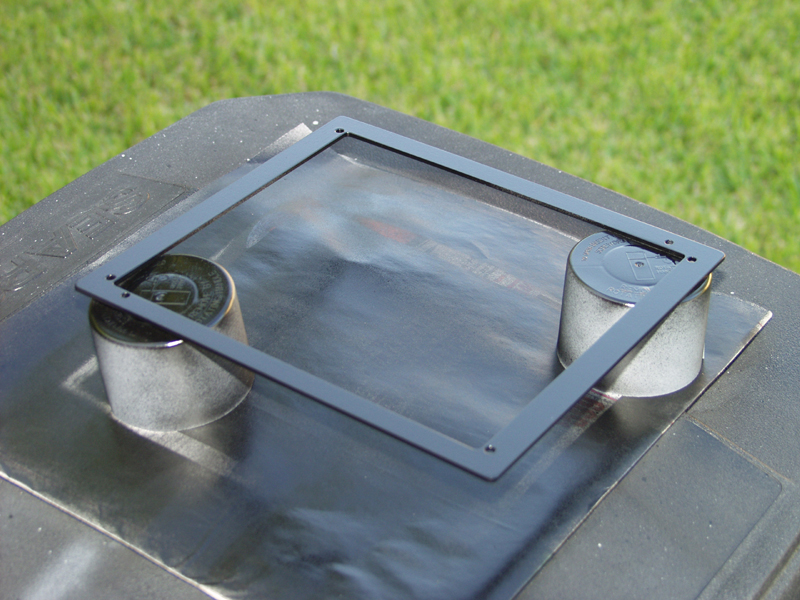 I started by taking measurements on the width. The height was very close already but it still needed some work there as well. I enlarged the holes to get the correct width. Then I used some white electrical tape to mark the line between the outside edges of the holes vertically. Then I put all the tools I needed to make the cut in the cabin and climbed in. I used the dremmel tool to make the cut. Once that was done I used a file to clean up the edges. I tested for fit and it was about bit here and a bit there.