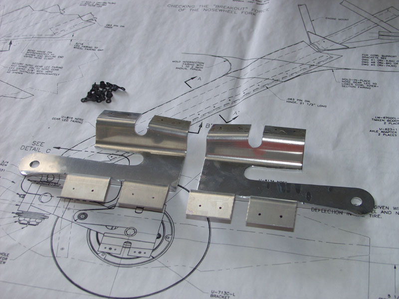 First I fit the nose gear fairing and worked on getting it to fit correctly like I did the main gear. Once that was done I drilled the 6 screw holes spacing around the lip and marked the wheel hole. Next I used the dremmel tool and then dressed up the edge. Still a bit tight but I need to get the brackets installd first. Next I drilled the brackets for the plate nuts.