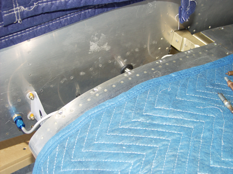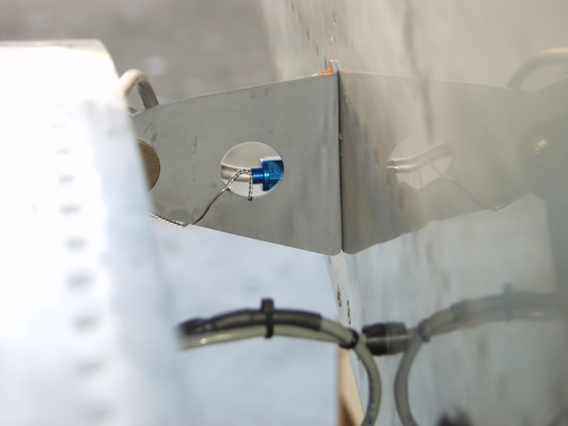 Got to the hangar and removed the left wing root fairing. I remembered I had to safety wire the bolt for the tank bracket. I used the big hole in the middle of the bracket to hold the wire.