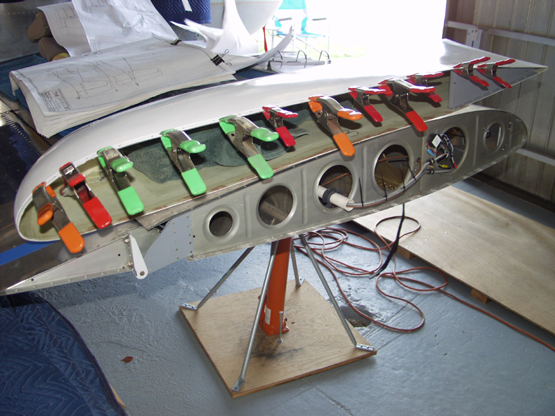 Next I glued a backing strip to the wing tip with epoxy and left it to dry. While that was drying I moved back to the wing root fairing. I needed to install the nutplates to the wing edge. I was running out of time as I promissed Jim I would head out to Hooks to help him with some rivets.