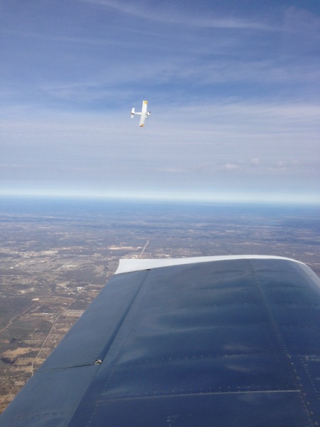 So I took off about 9:30 and flew to Navasota and dropped in for a landing. After a quick stop I launched and headed south waiting to hear from John in the air. He was running a bit late when he checked in something about putting in fuel or something trivial like that :). Anyway he finally showed up and we headed for Brenham.