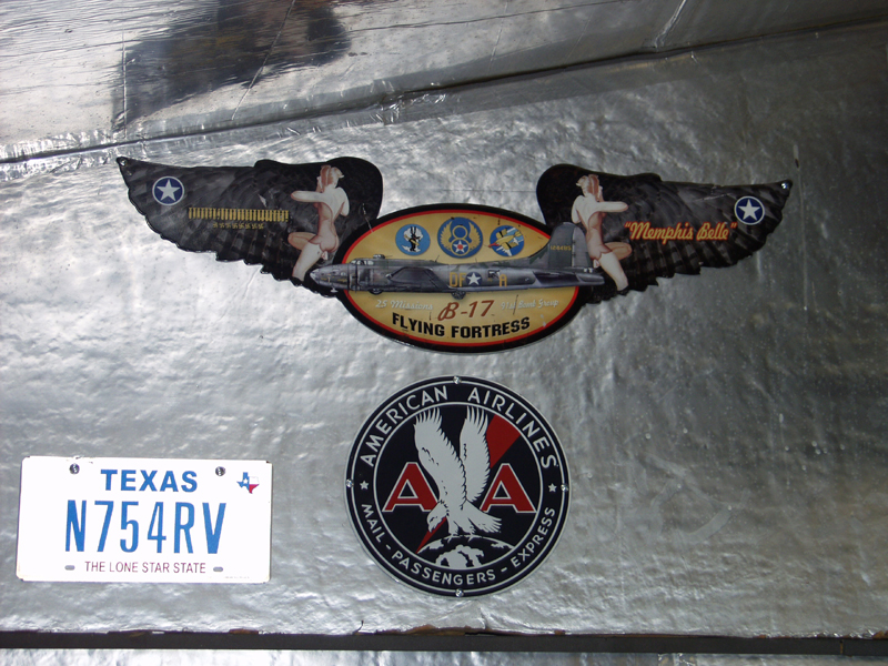 It started getting late so I will wait to drill the sides until tomorrow with daylight. I got a couple of new signs so I installed them on the back will. A P-51 and a B-17 placque.