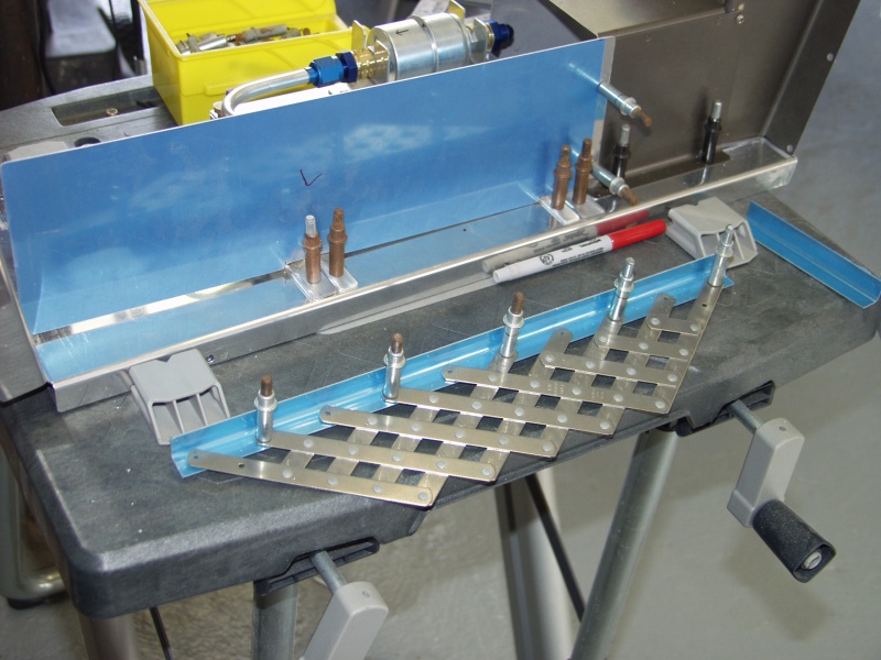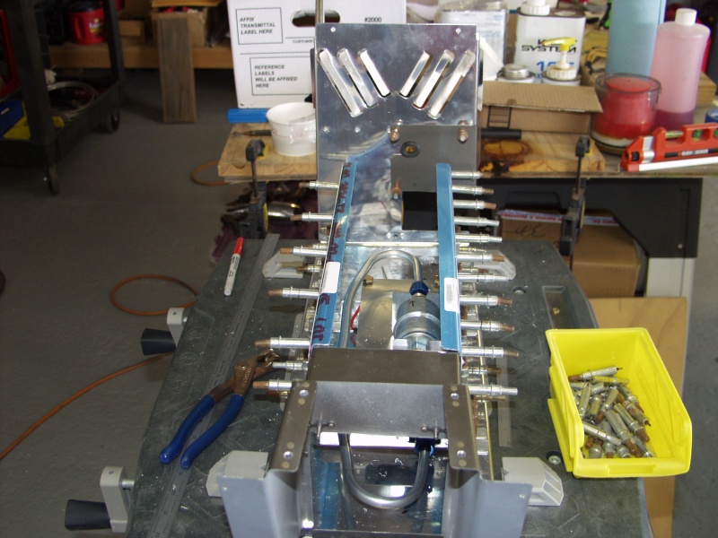 Next I drilled and clecoed the angle to the side pieces and cut some smaller pieces to hold them to the center floor piece. I'm using the lightweight angle to keep the weight down.